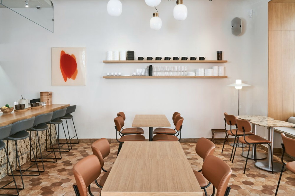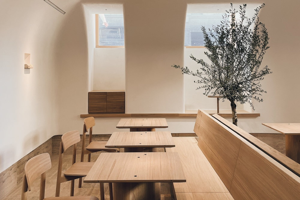 — Много света, много дерева и много аппетитных текстур — штукатурка сливочного цвета или мохнатое кресло оттенка топленого молока. Меню небольшое, без замороченности. Можно с утра выпить вина или кофе из воронки (Эфиопия, Колумбия, Кения).