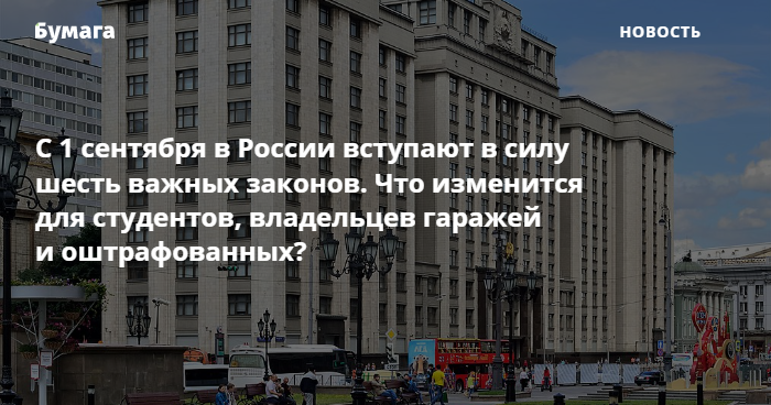 С 1 сентября в России вступают в силу шесть важных законов. Что изменится для студентов, владельцев гаражей и оштрафованных?