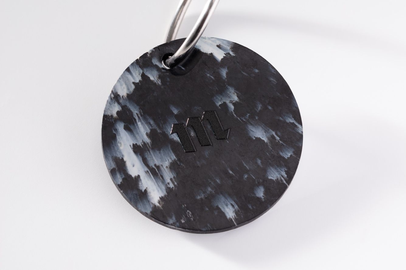 Брелок выглядит так, будто его старательно вытачивали из куска мрамора. Но на самом деле он сделан из переработанного пластика, оставшегося после 3D-печати. Для производства модели пластик измельчили в крошку и положили под пресс при определенной температуре. На брелке могут быть неровности и вмятины — из-за технологии производства, но она же позволяет создать уникальный дизайн для каждого изделия.