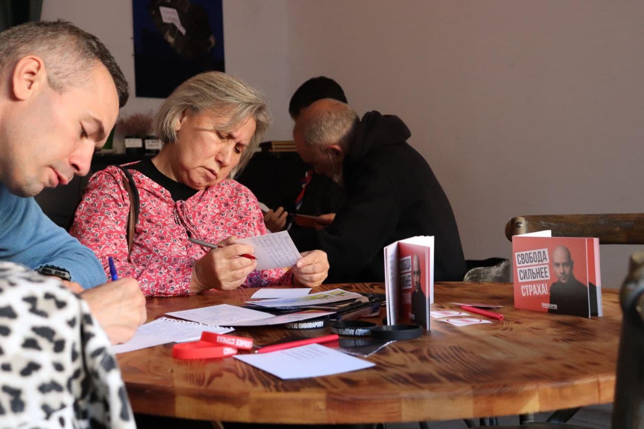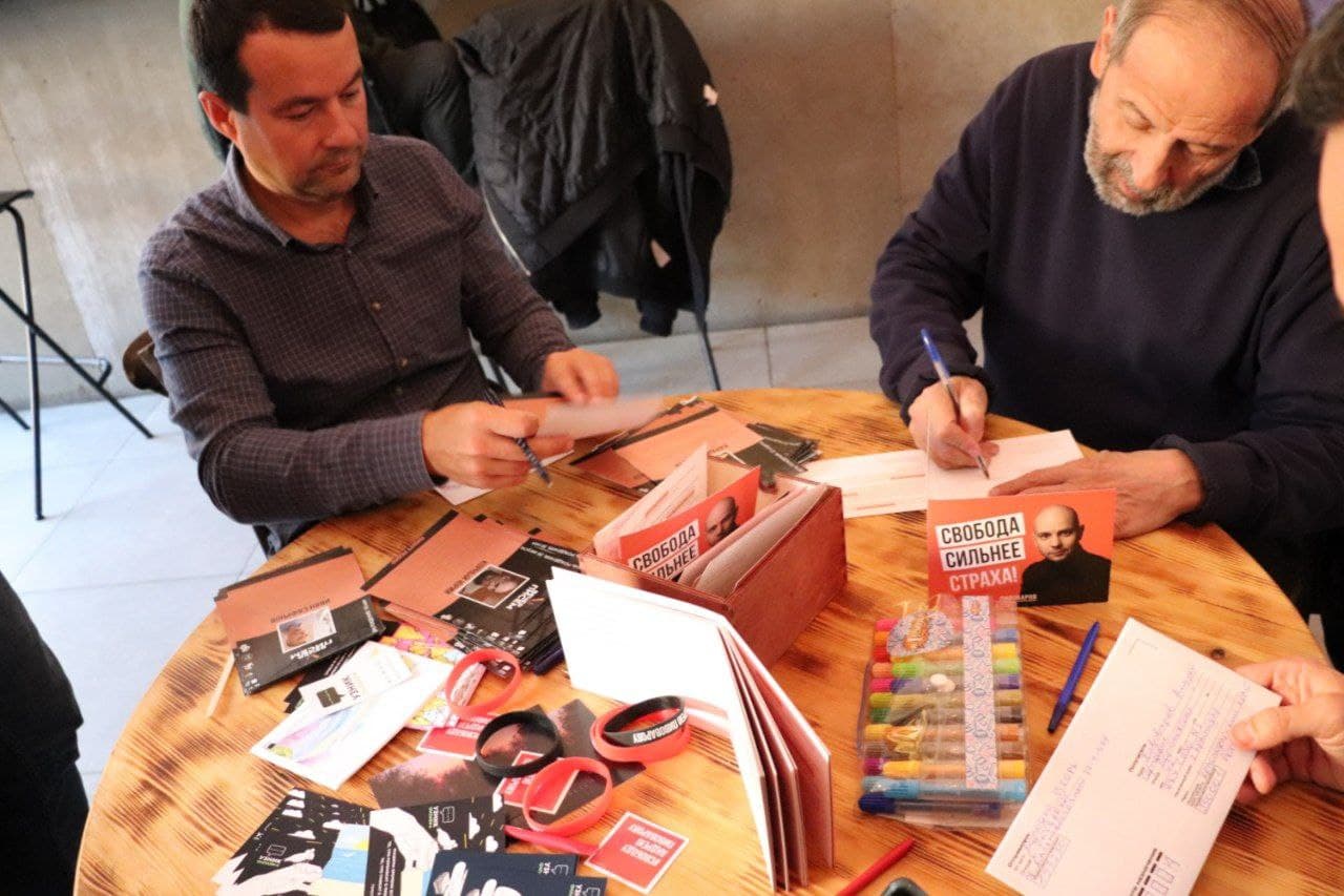 В Петербурге прошел вечер открыток политзаключенным. В баре "Фогель" собрались около 20 человек, чтобы написать открытки и письма бывшему исполнительному директору "Открытой России" [движение признано нежелательной организацией]Андрею Пивоварову, обвиняемому в сотрудничестве с нежелательной организацией, журналисту Ивану Сафронову, обвиняемому в госизмене, осужденной на 15 лет по делу о шпионаже Карине Цуркан и другим политическим заключенным.