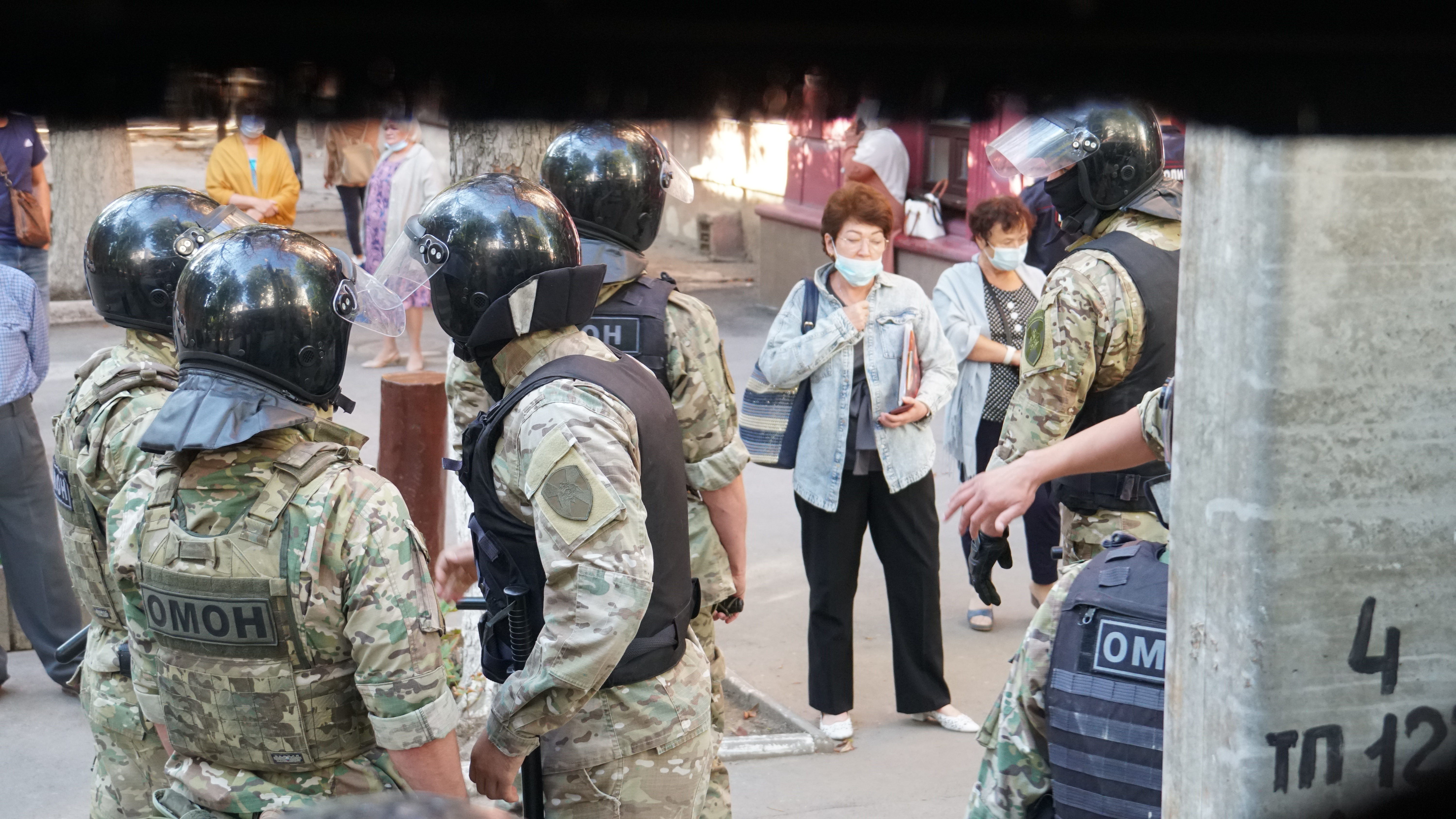Под зданием отдела полиции находятся родные задержанных и активисты.