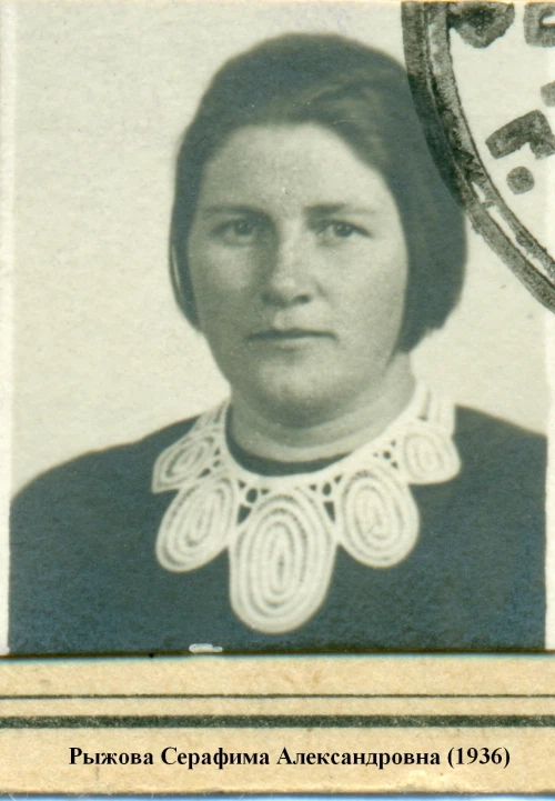 Серафима Рыжова познакомилась с Ежовым летом 1925 года в Кисловодске и в 1926 году начала работу в должности технического секретаря текущего сектора в Орграспредотделе, а затем на той же должности в сельскохозяйственном секторе и в контроле исполнения решений ЦК. С 1930 года, когда Ежов возглавил отдел ЦК, Рыжова стала его секретарем вплоть до 1936 года, потом три или четыре месяца работала в секретариате НКВД и вернулась назад в ЦК (62). Бывший на приеме у Ежова 8 мая 1935 года Аросев так описал Ежова и Рыжову в служебной обстановке: