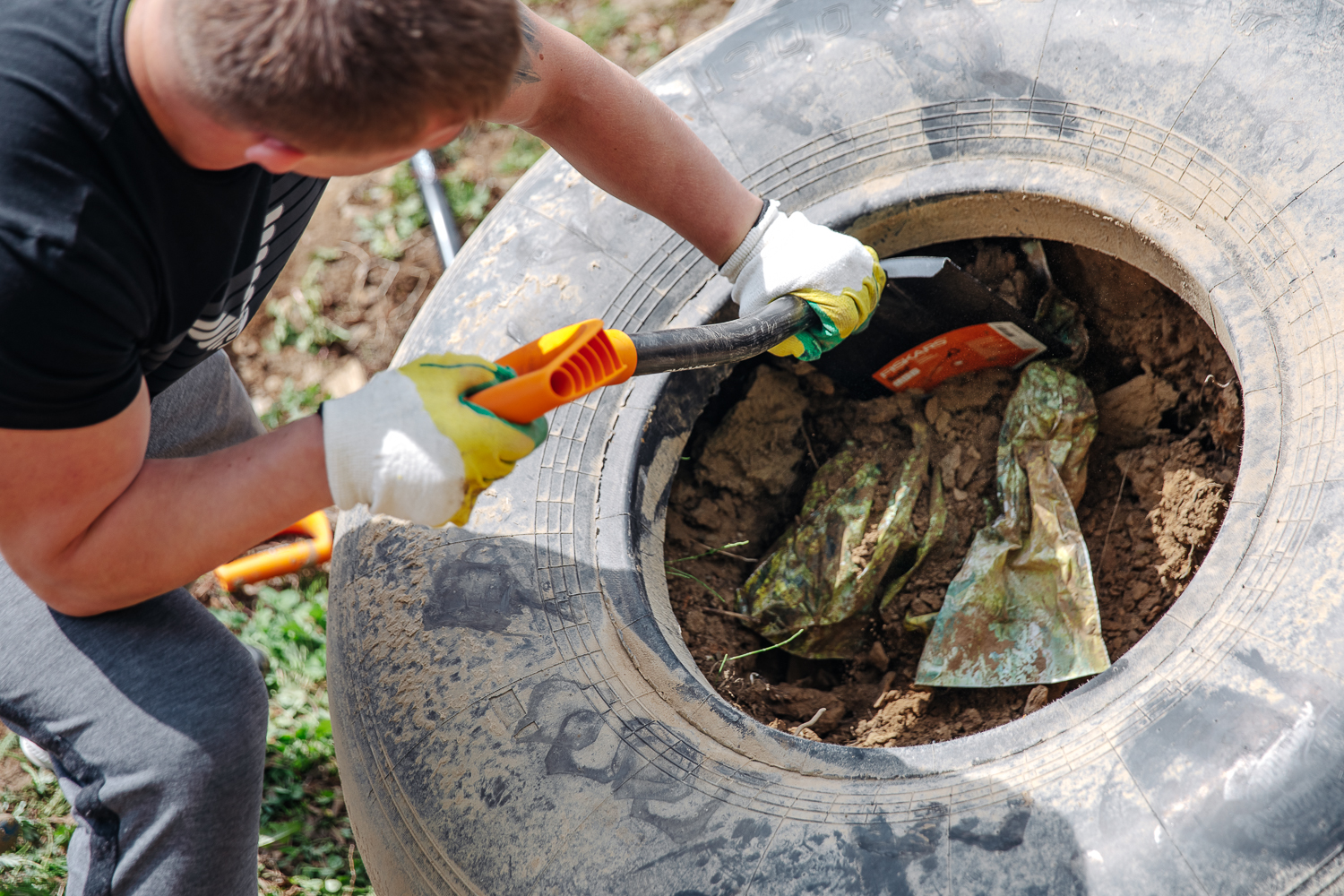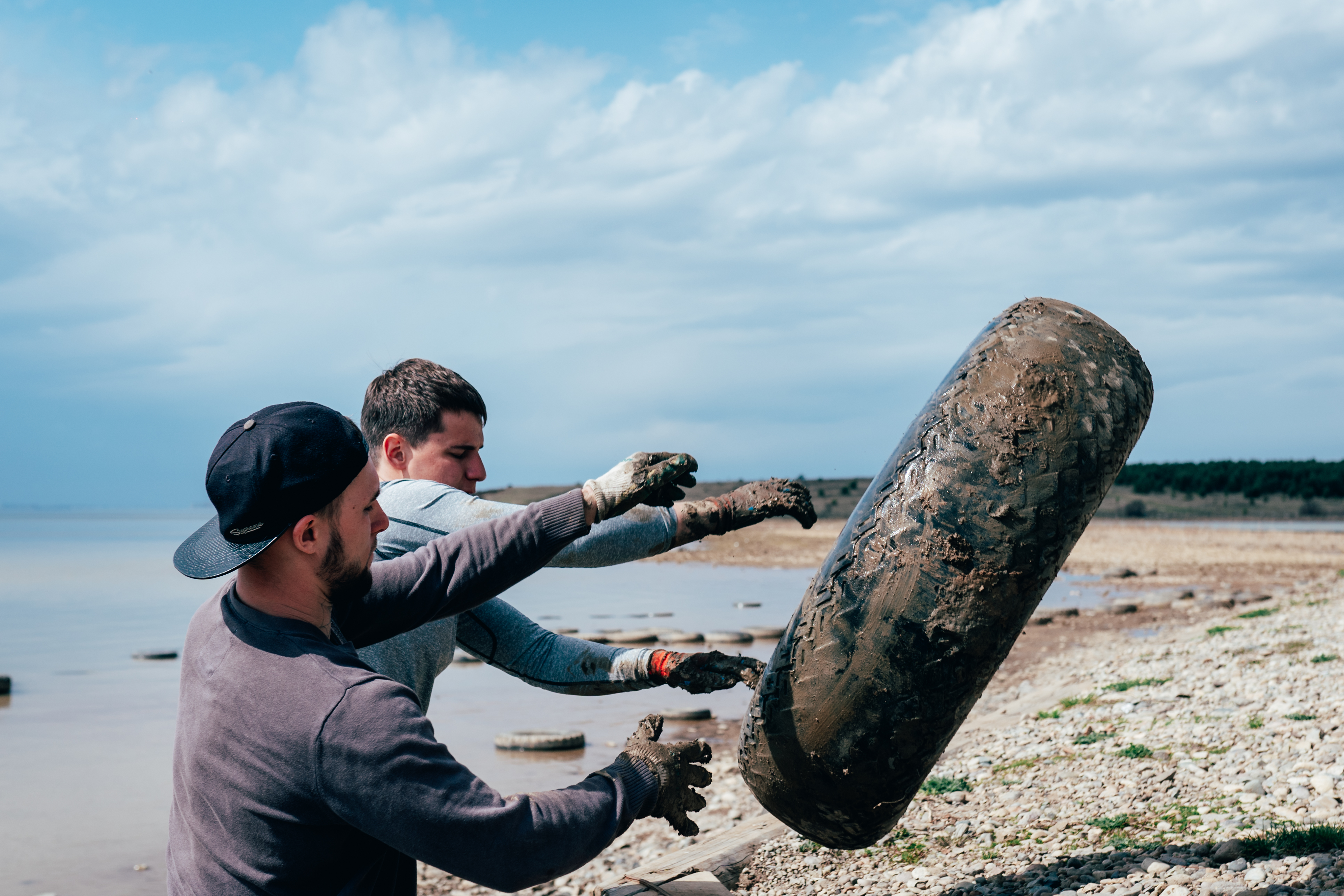 Берег водохранилища было стратегически важно очистить – около 100 тонн покрышек вывезли с него. Причем эти покрышки были забиты глинистым грунтом, который нужно было выколачивать, – на каждую уходило минут по 40.