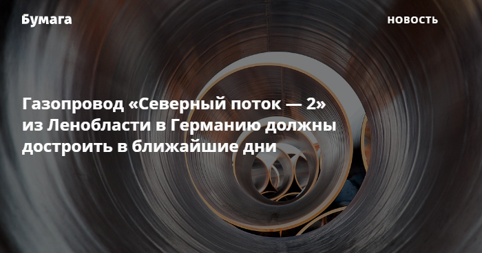 Ранее председатель правления «Газпрома» Алексей Миллер заявил, что первые поставки топлива по «Северному потоку — 2» могут быть осуществлены в отопительном сезоне текущего года.
