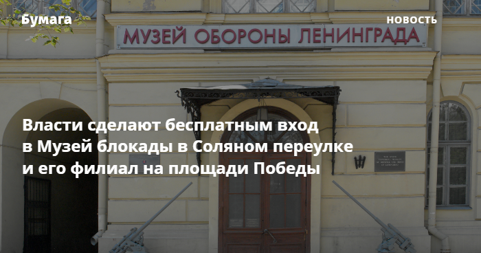 Власти сделают бесплатным вход в Музей блокады в Соляном переулке и его филиал на площади Победы