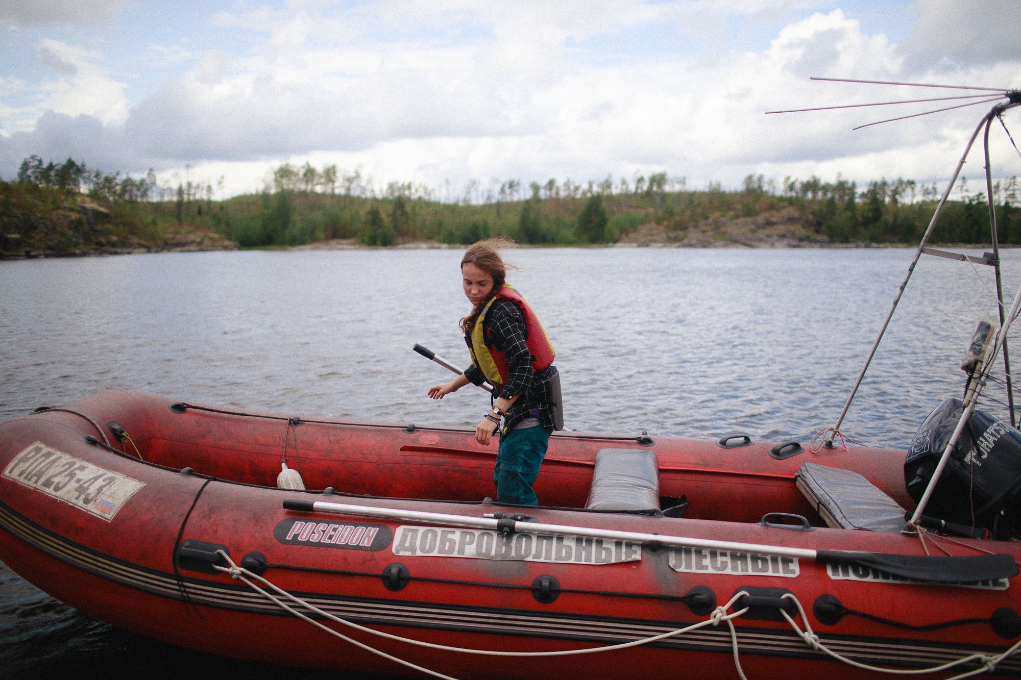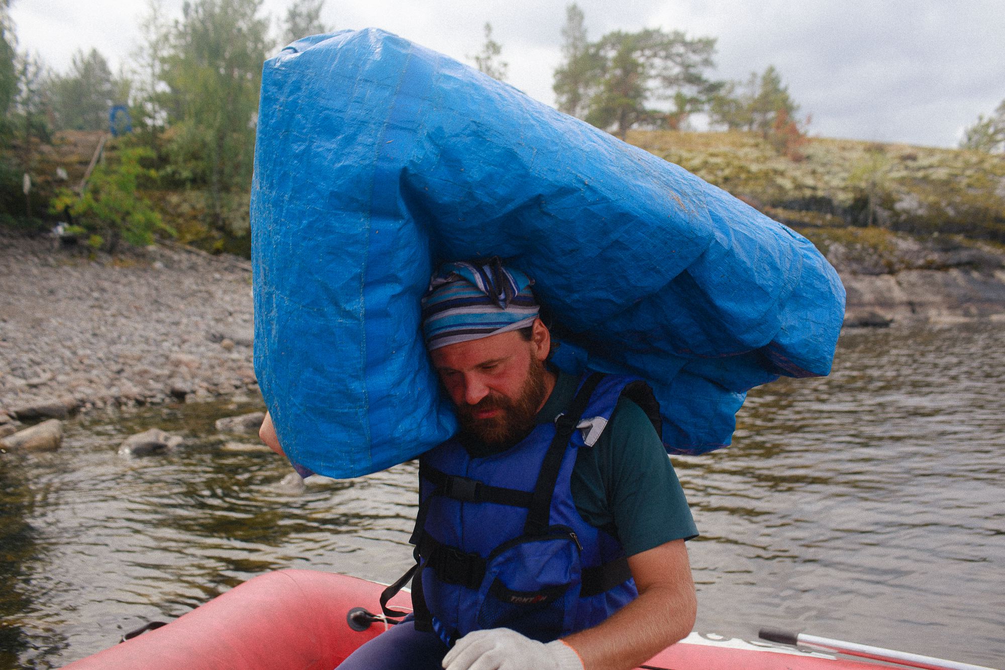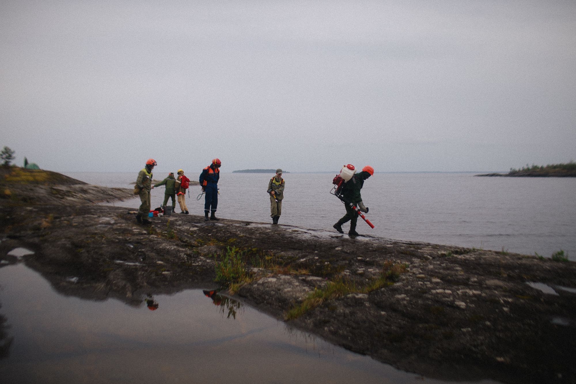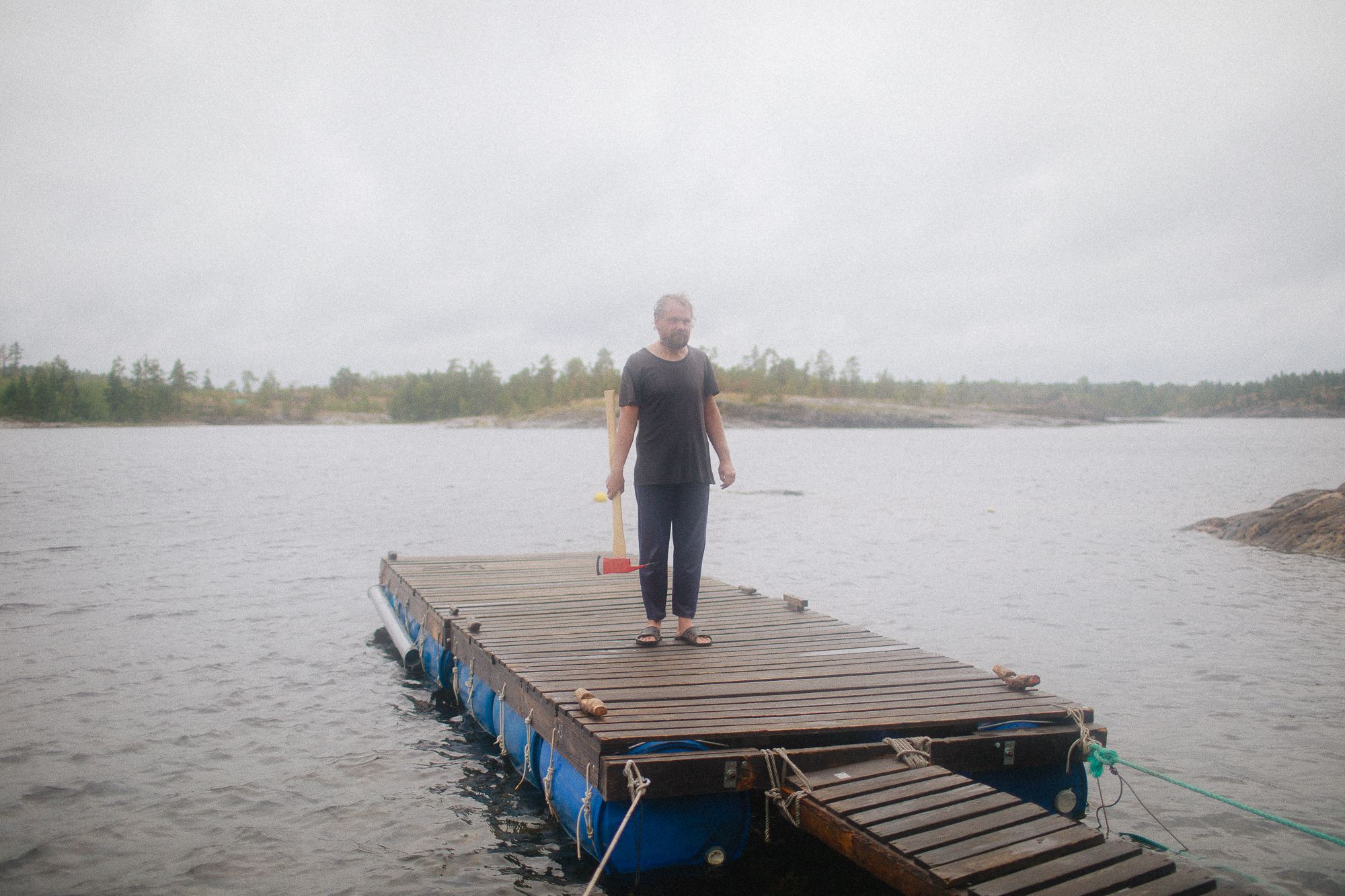 Иван с пожарным топором на причале острова Пиени-Хепосаари
