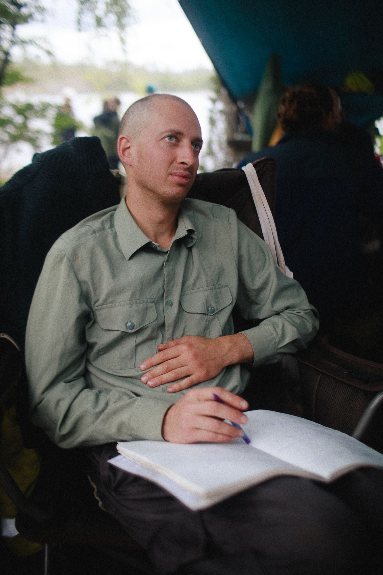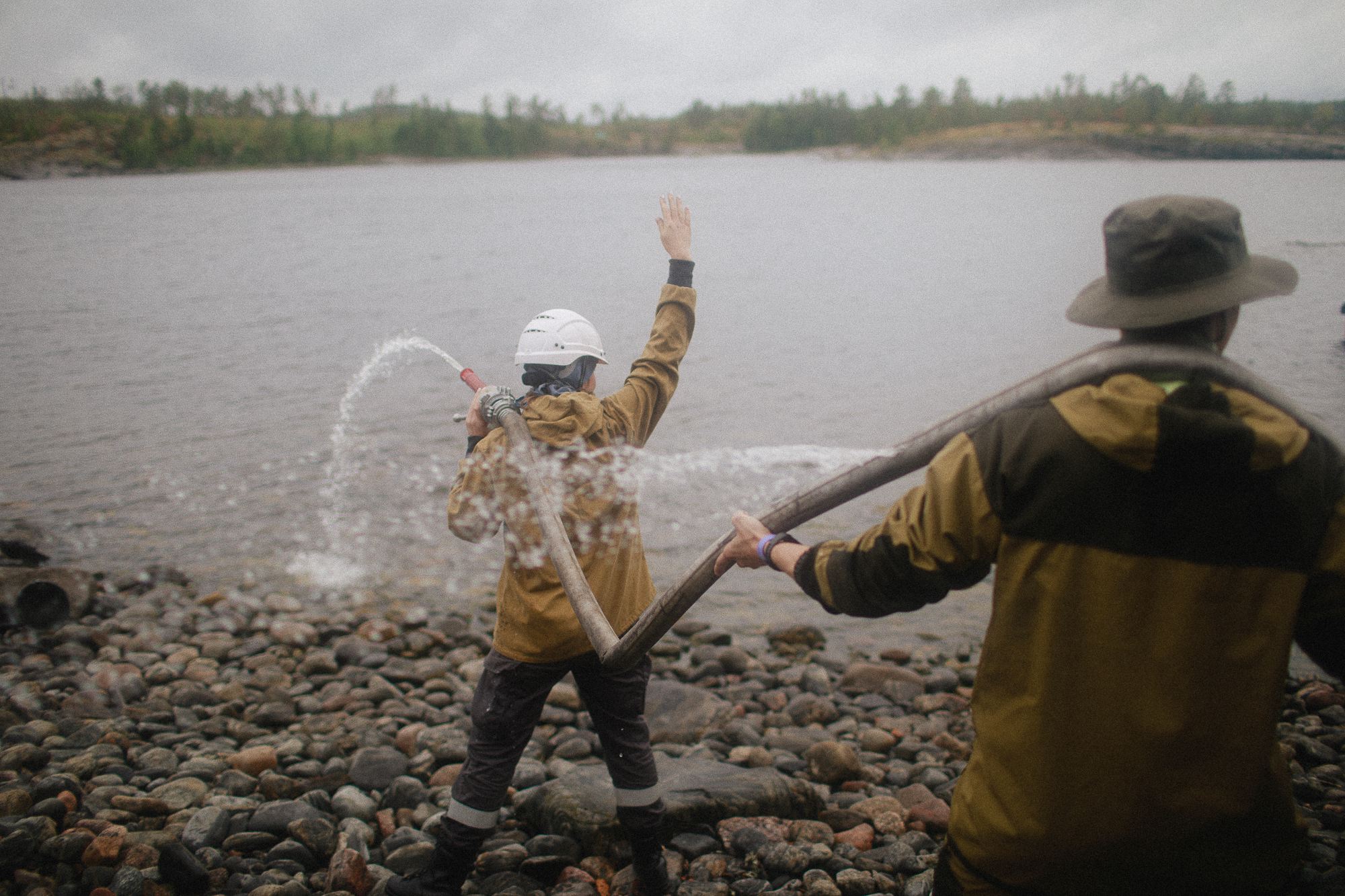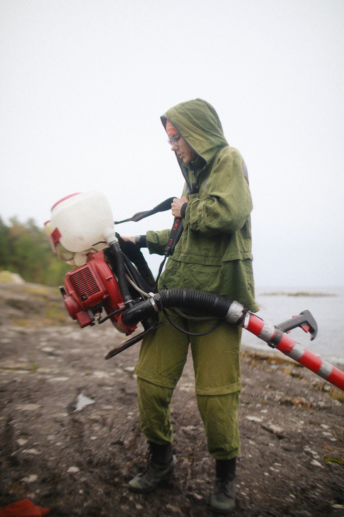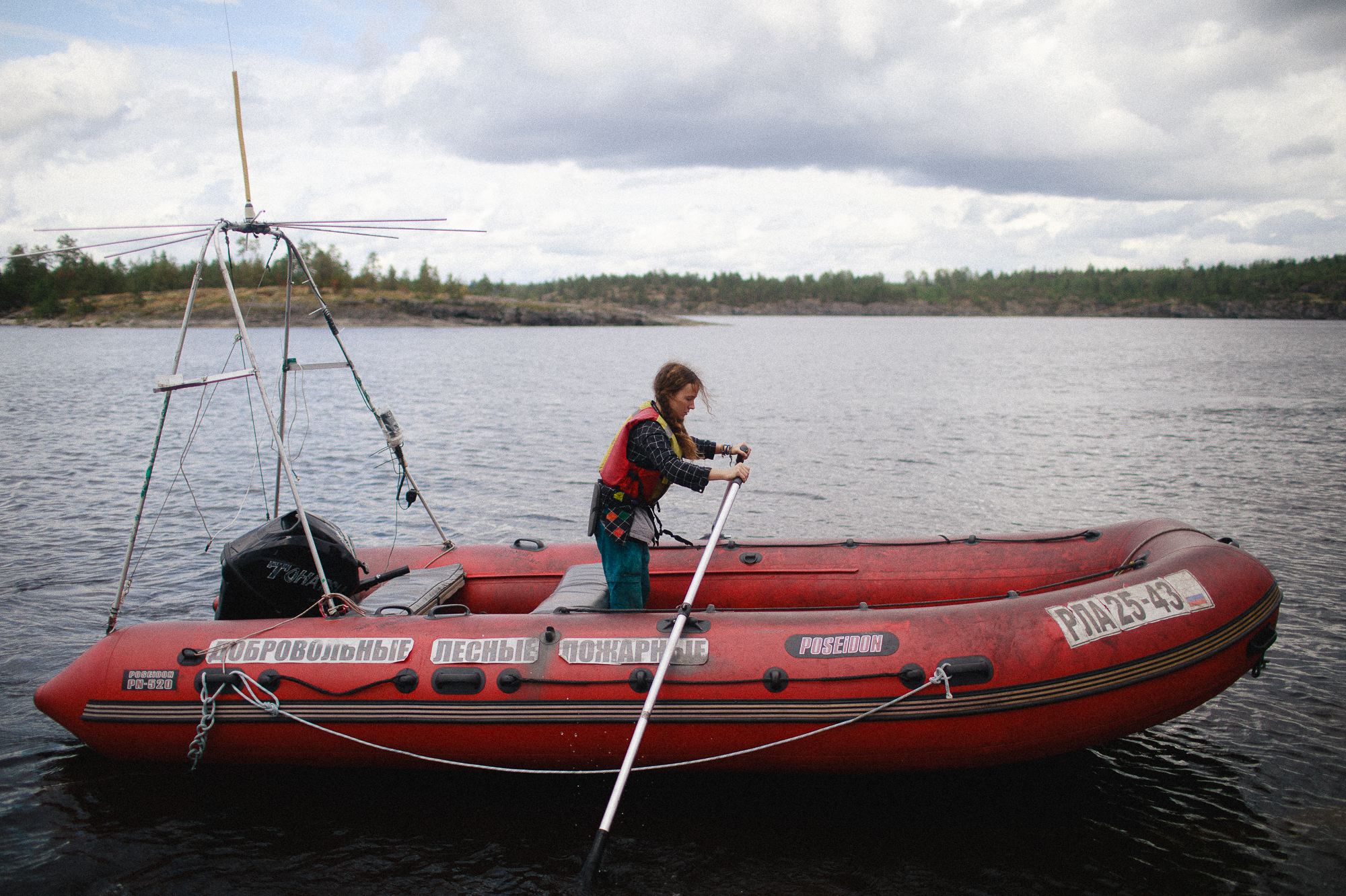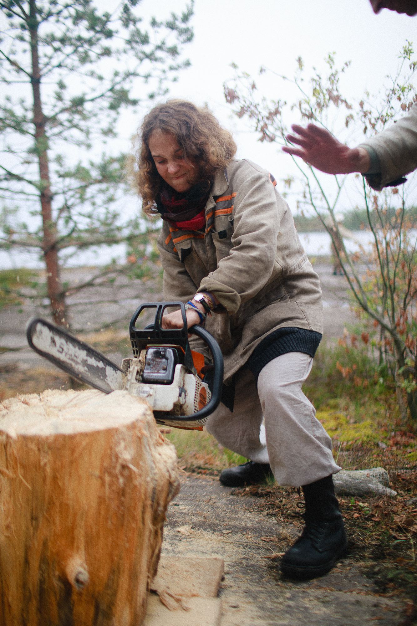 Иван с пожарным топором на причале острова Пиени-Хепосаари