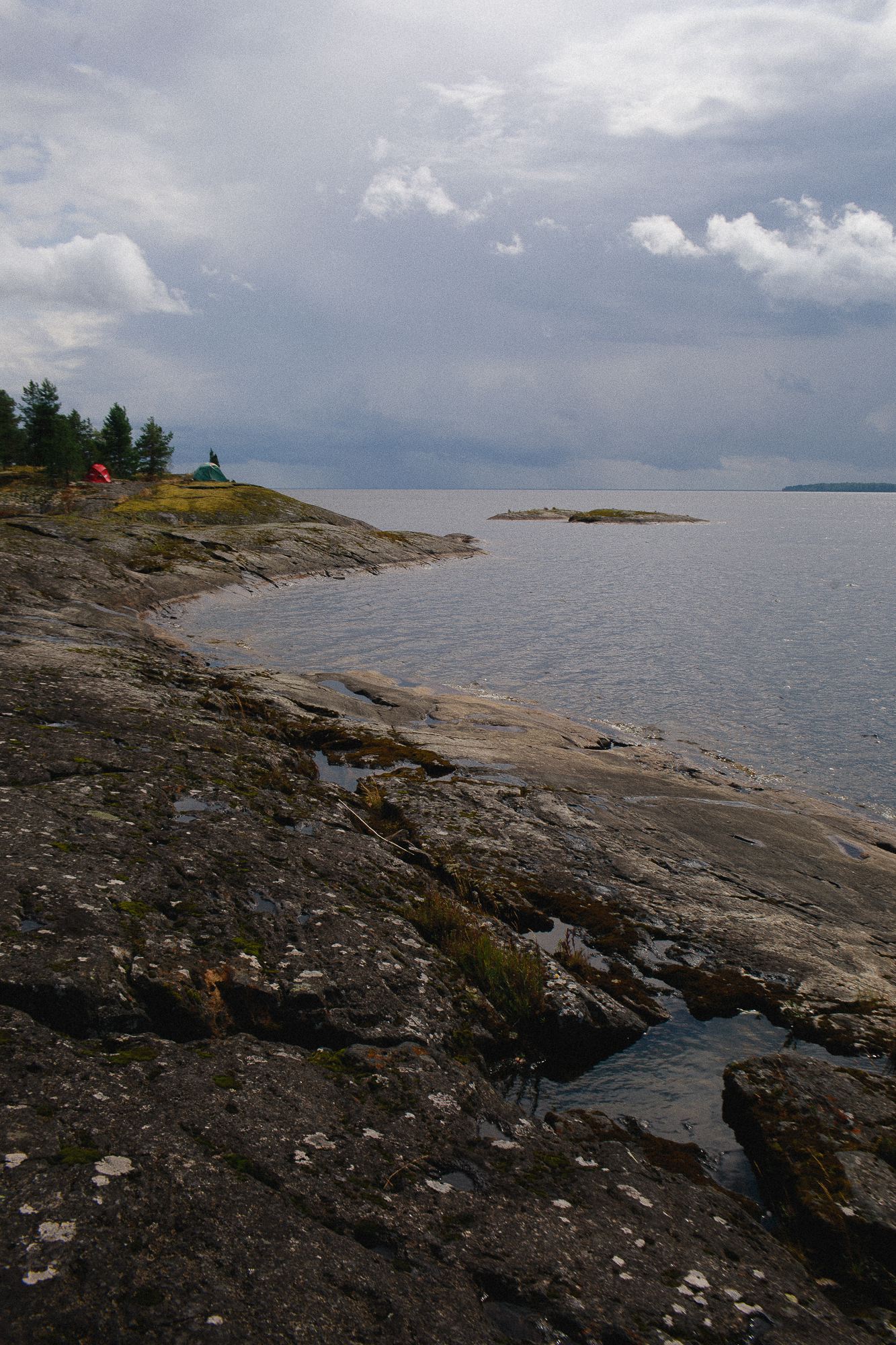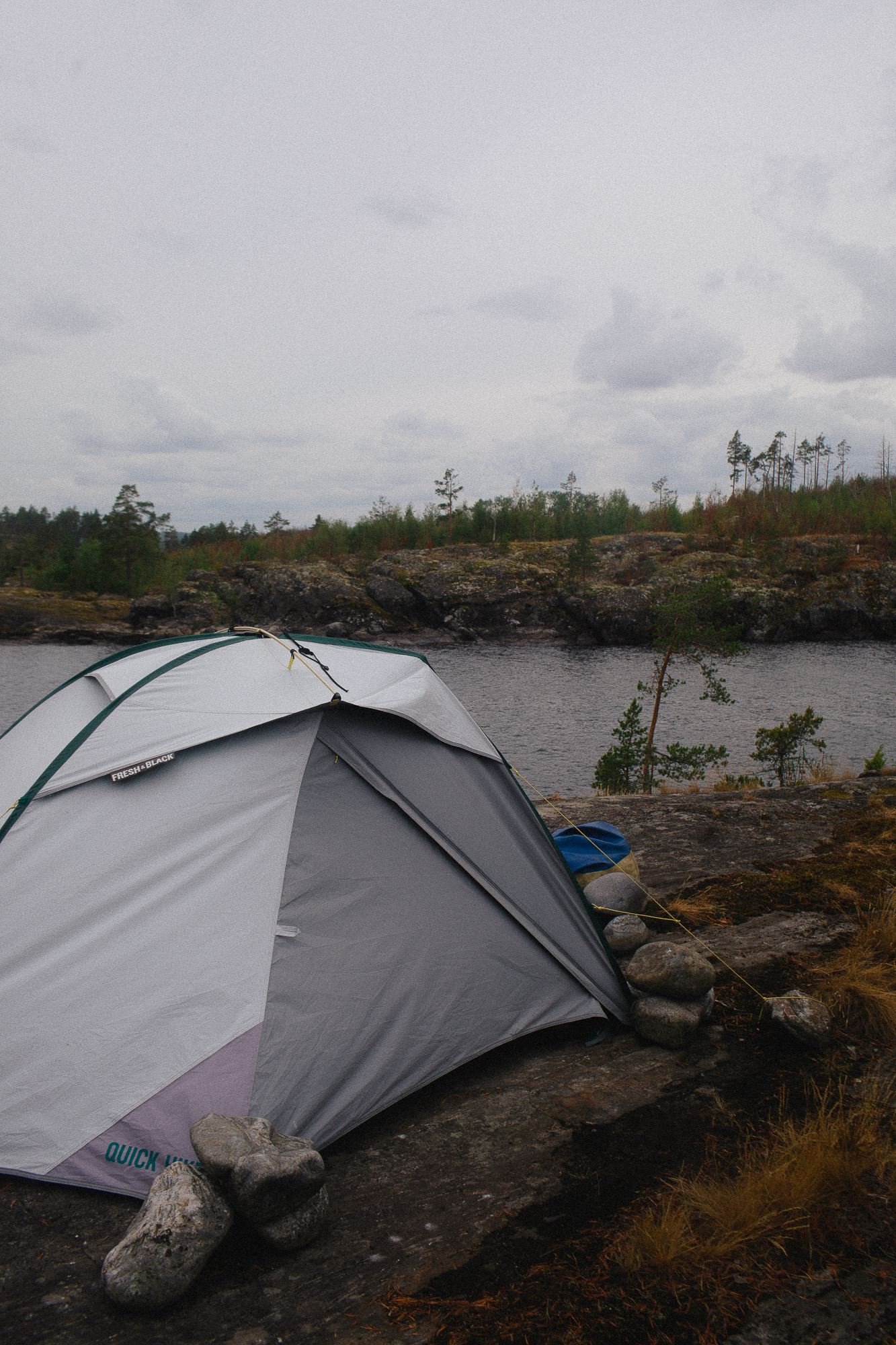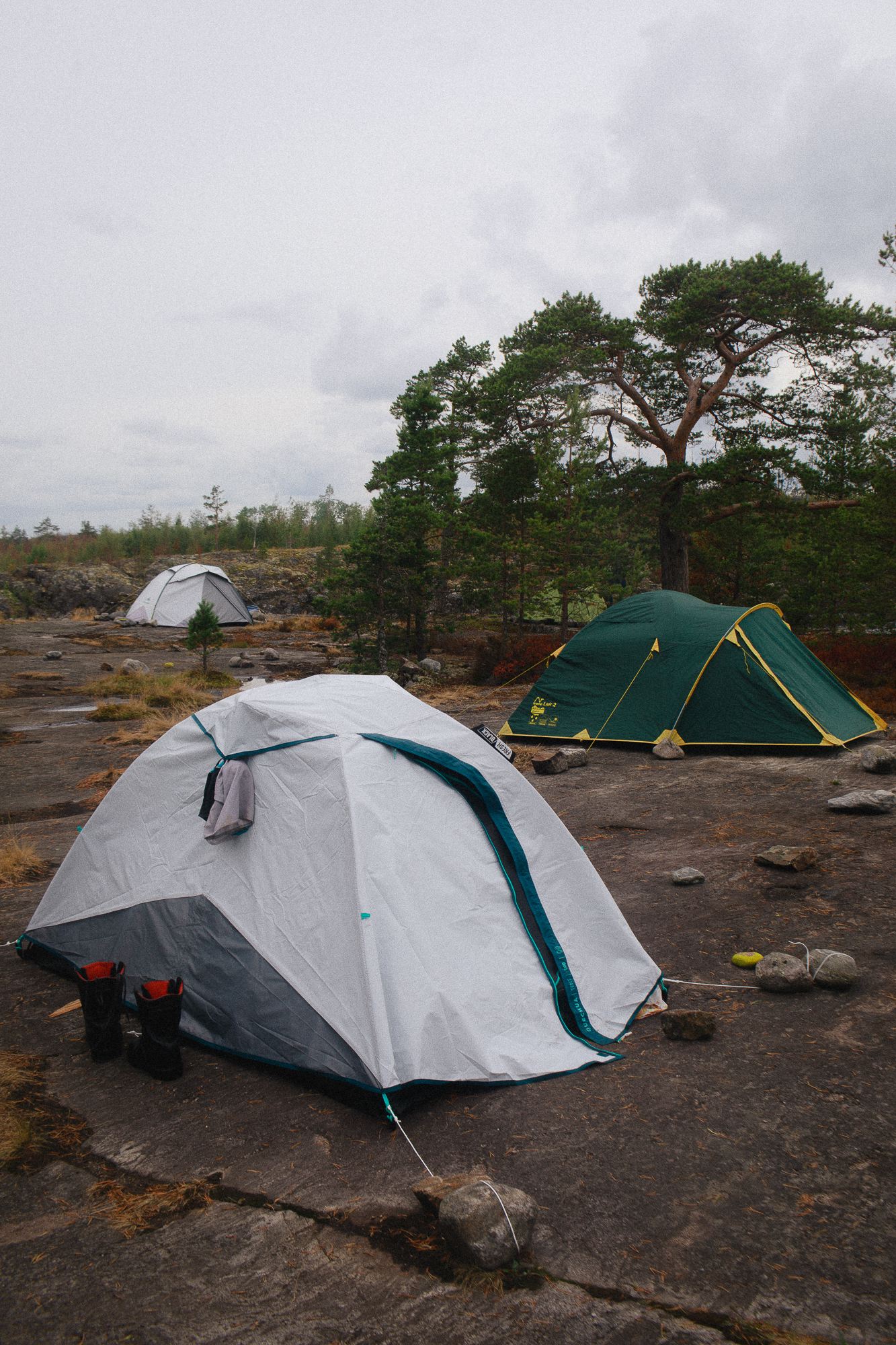 Палатки, установленные на скалах острова Пиени-Хепосаари