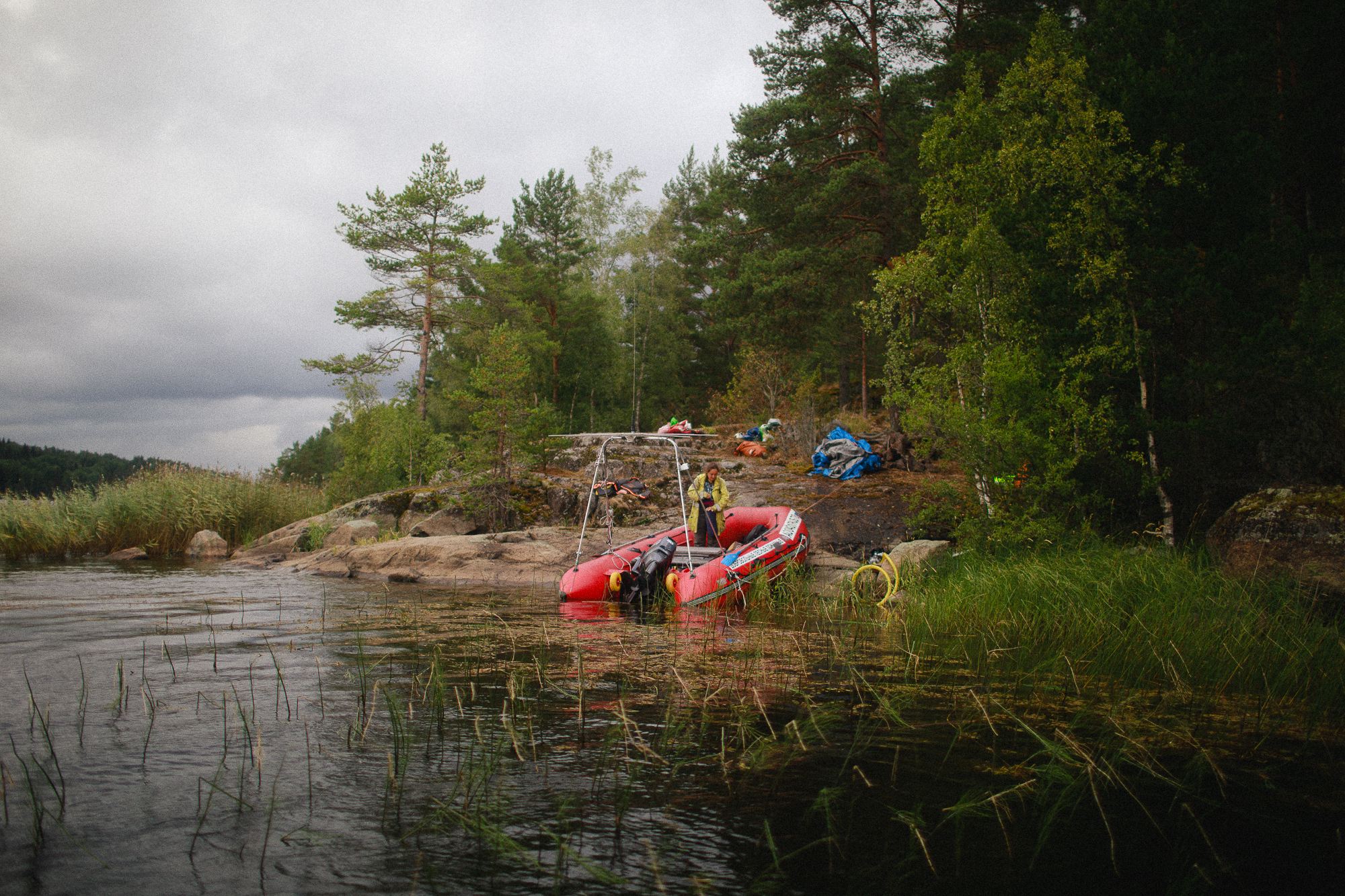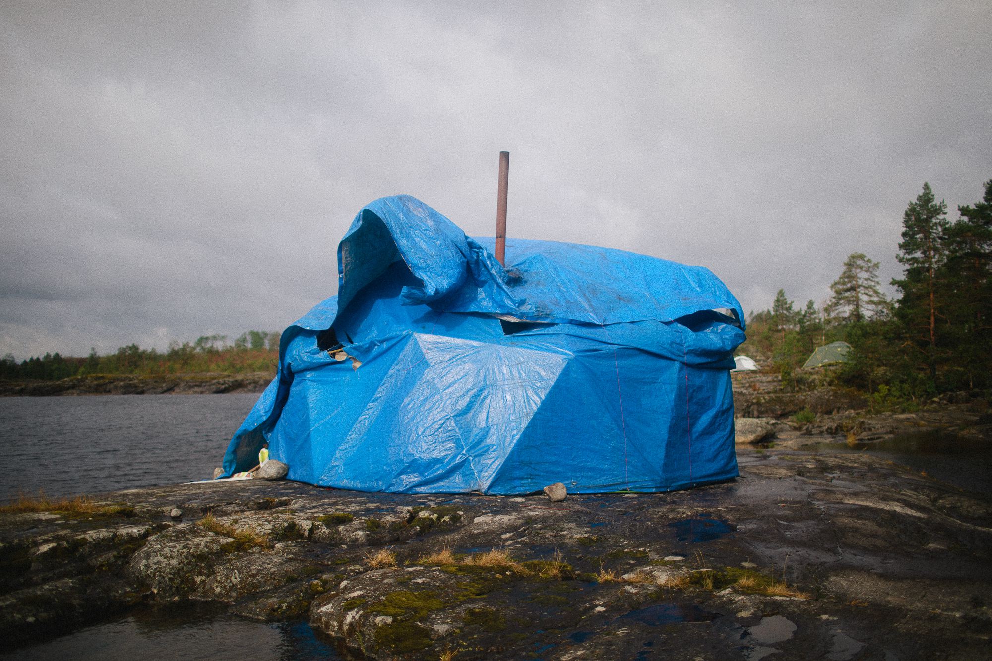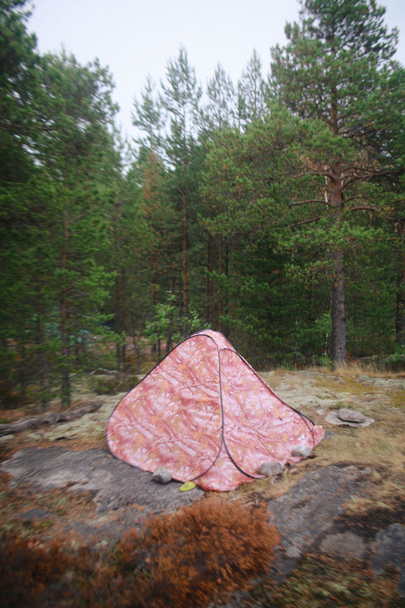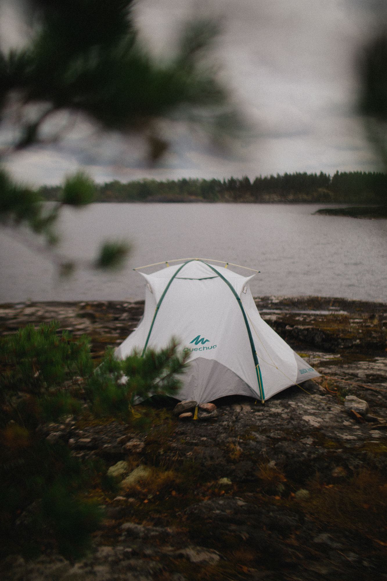Палатки, установленные на скалах острова Пиени-Хепосаари