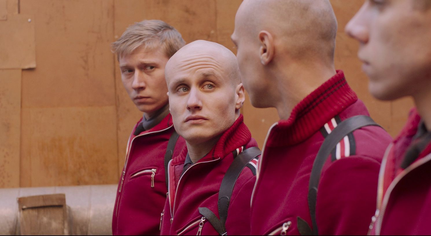 Здоровые, крепкие, бритоголовые парни играют в мяч, дело происходит в широком зале какого-то старинного здания с роскошной хрустальной люстрой. Что это за помещение, как они там оказались, почему не боятся разбить люстру? Кто они вообще такие — эти мужчины, статные и мускулистые как на подбор, в одинаковых красных костюмах? С этих костюмов, с этого красного цвета все и начинается.