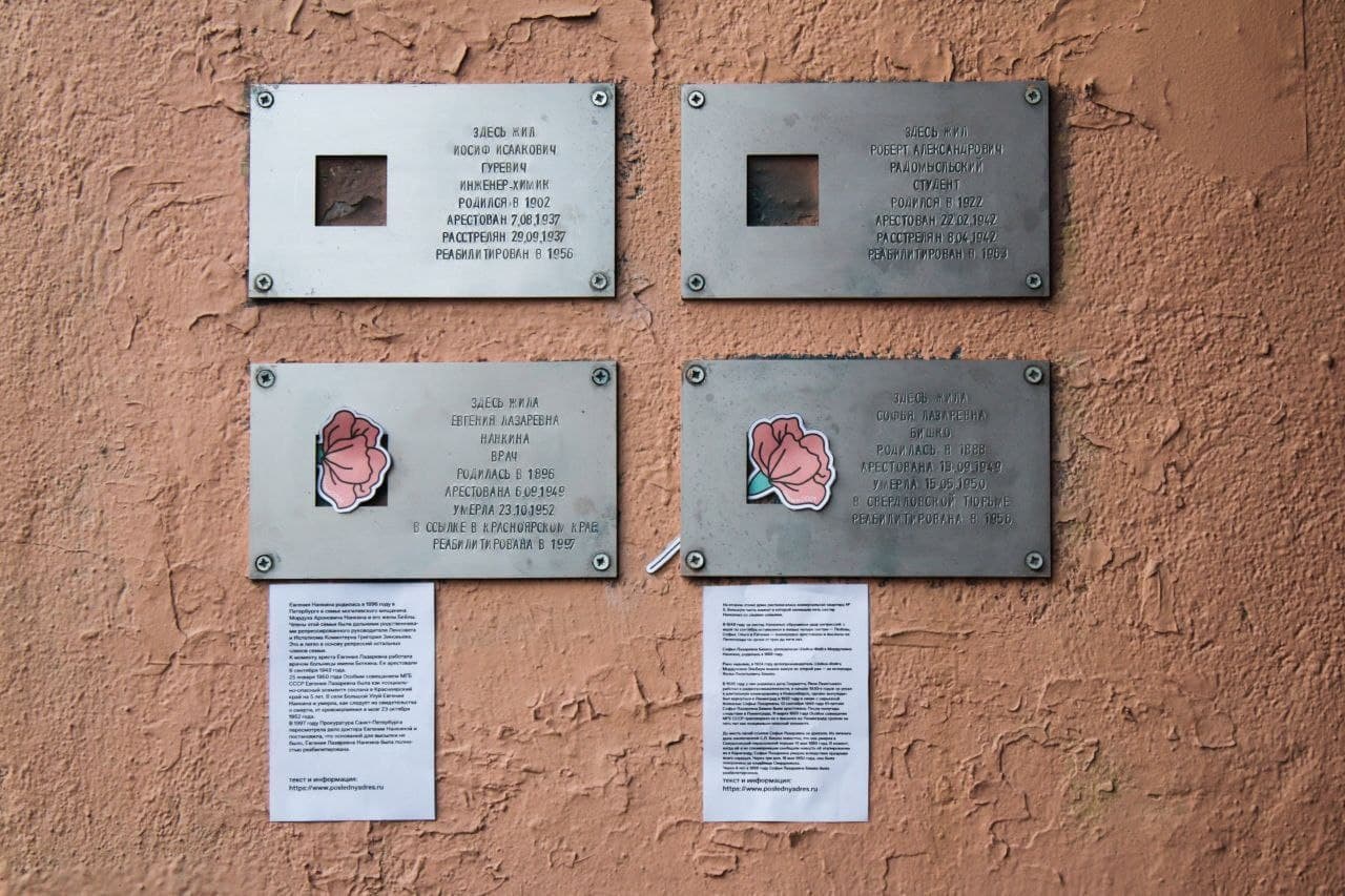 Позднее петербургские активистки провели еще одну акцию — «Стены помнят ее». В рамках этой акции, приуроченной к сентябрьской неделе женской истории, феминистки дополнили таблички «Последнего адреса» — рядом с именами репрессированных женщин появились бумажные цветы и листовки с биографиями, также сообщает телеграм-канал «ПЬЯTNIЦА».