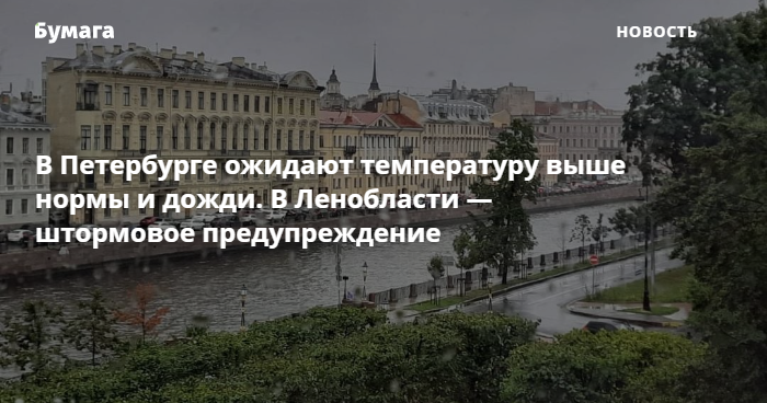 Днем в Петербурге прогнозируют от +16 до +18 градусов, местами умеренный дождь, умеренный ветер (в прибрежных районах — порывы до сильного), сообщает Гидрометцентр.