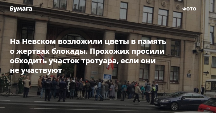 «Фонтанка» с места события сообщила, что участок тротуара «закрыли для простых граждан, пока чиновники возлагают цветы». По данным издания, полицейские стояли на углу Невского и Большой Морской улицы и просили пешеходов возвращаться к светофору и переходить на другую сторону улицы. Об этом же сообщил телеграм-канал «Аварийный Петербург».