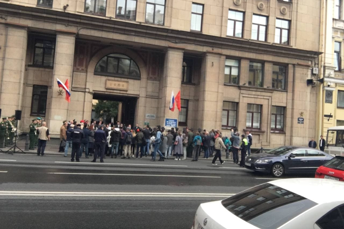 Утром 8 сентября на Невском проспекте прошла торжественная церемония возложения цветов к мемориальной доске «Героизму и мужеству ленинградцев». В акции участвовали несколько десятков человек, в том числе чиновники, ветераны и юнармейцы.