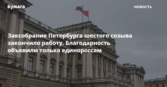Заксобрание Петербурга шестого созыва закончило работу. Благодарность объявили только единороссам