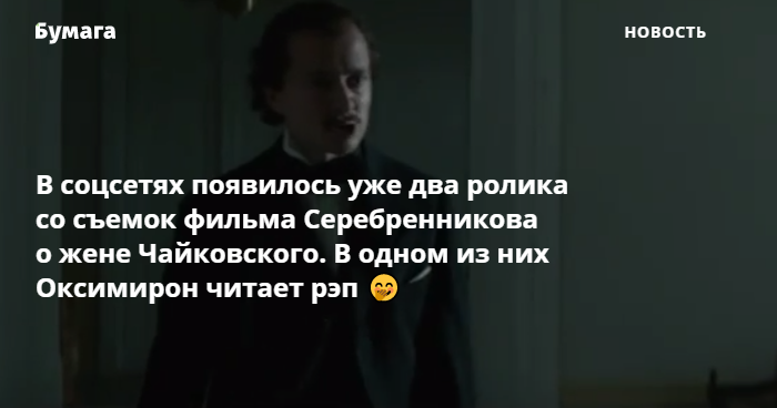 В соцсетях появилось уже два ролика со съемок фильма Серебренникова о жене Чайковского. В одном из них Оксимирон читает рэп 🤭