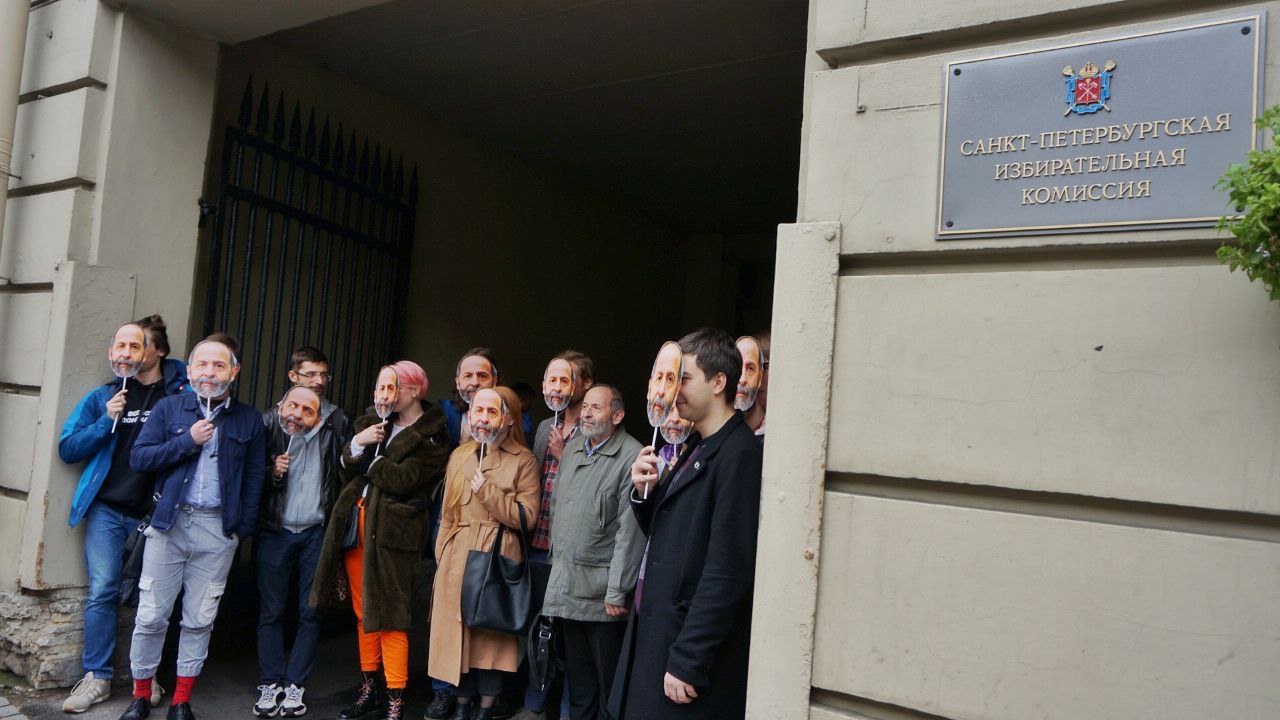 Участники акции таким образом хотели «показать членам СПбИК, насколько безумно нелепо выглядит» ситуация с двойниками Вишневского, пишут в канале движения. Акция прошла у здания петербургского Горизбиркома на Вознесенском проспекте.