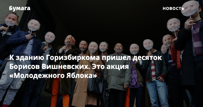 Активисты «Молодежного Яблока» провели акцию «А какой Вишневский сегодня ты?», посвященную выдвижению двойников политика Бориса Вишневского на выборы в Закс, сообщается в телеграм-канале активистов.