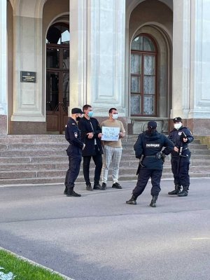 Пикетчики стояли рядом друг с другом напротив Заксобрания Петербурга, держа плакат с надписью «Мы за честные выборы!». Их задержали полицейские и отвезли в отдел полиции № 1 по Адмиралтейскому району.