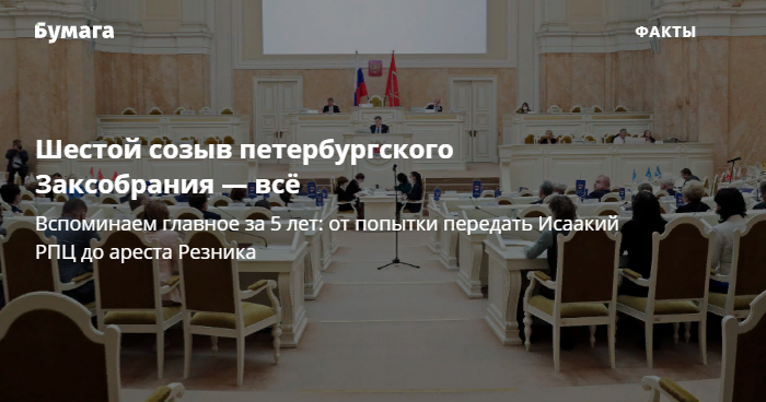 Сами парламентарии за это время едва не передали Исаакий РПЦ, чуть не закрыли маленькие бары, пытались легализовать стрит-арт и выступления уличных музыкантов, ограничили возможности для проведения массовых акций и референдумов. «Бумага» вспоминает главное из работы созыва.