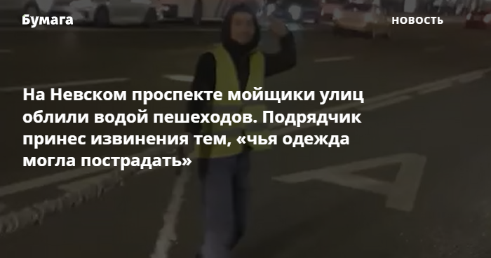 На Невском проспекте мойщики улиц облили водой пешеходов