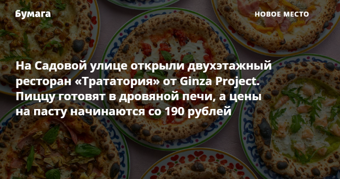На Садовой улице открыли двухэтажный ресторан «Трататория» от Ginza Project