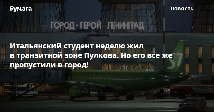 25-летний студент Петербургского электромашиностроительного колледжа Габриэле провел неделю в транзитной зоне аэропорта Пулково — пограничники не хотели пускать его в страну из-за бюрократических проблем. Ситуация разрешилась только 9 сентября, когда Габриэле пропустили в город, пишет 47news.