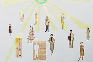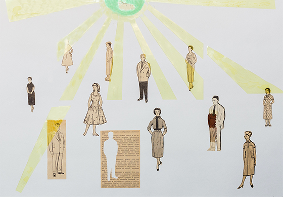 © apexart Полина Заславская. Основы современного домоводства. 2020. Серия коллажей. 73×55 см, тушь, цветной пластик, вырезки из журналов Полина Заславская в своей практике изучает влияние массовой культуры на наше поведение и конструирование гендерных стандартов. В серии коллажей «Основы современного домоводства» она прослеживает, как мода и товары общественного потребления из женских журналов 1960-х — 1970-х отражали социальный порядок и гендерную нормативность тех лет и какую воспитательную функцию они несли для будущих домохозяек. Эти издания не только советовали, как правильно готовить, одеваться и вести домашнее хозяйство, но и предлагали образ идеальной женщины — домохозяйки, матери, работницы. Гламурные журнальные картинки не рассказывали о том, как такие идеально сконструированные миры и мечты разбиваются о «стеклянный колпак», описанный Сильвией Плат в одноименном романе. Выступающая за право женщин выбирать карьеру и становиться писательницами и журналистками, после своей трагической смерти Плат прослыла в литературном мире — где всегда доминировали мужчины — психически неуравновешенной. Исследования «эффекта Сильвии Плат» о большей предрасположенности женщин-поэток к психическим расстройствам продолжаются и по сей день.