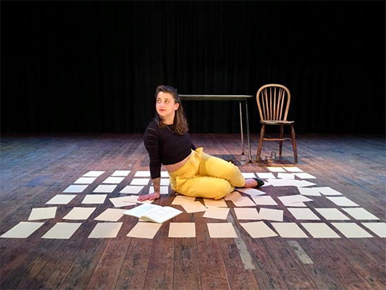 © apexart Соня Казовски. Битва мертвых и несуществующих душ. 2019. Документация перформанса Инсталляция «Сцена 5 — Воспроизведение» Сони Казовски посвящена жизни и творчеству кубинской художницы Аны Мендьеты. Бытует мнение, что в смерти Мендьеты виноват ее муж — известный нью-йоркский художник-минималист 1970-х Карл Андре. Во время судебного процесса его защита утверждала, что Мендьета была неуравновешенной и потому совершила самоубийство. В качестве доказательства невменяемости художницы суду были предъявлены ее работы. «Сцена 5 — Воспроизведение» — перевод на русский язык одной из глав пьесы Сони «Битва мертвых и несуществующих душ», опубликованной в 2019 году. Текст, предназначенный и для индивидуального, и для коллективного чтения, приглашает зрителей выставки поучаствовать в процессе ниспровержения устоявшихся нарративов истории искусства и пересмотра принципов музейных коллекций и института авторства. Работа Казовски представляет собой активное переосмысление сложившегося в художественной среде положения вещей, особенно тех ее аспектов, которые долго игнорировались или подвергались эксплуатации.