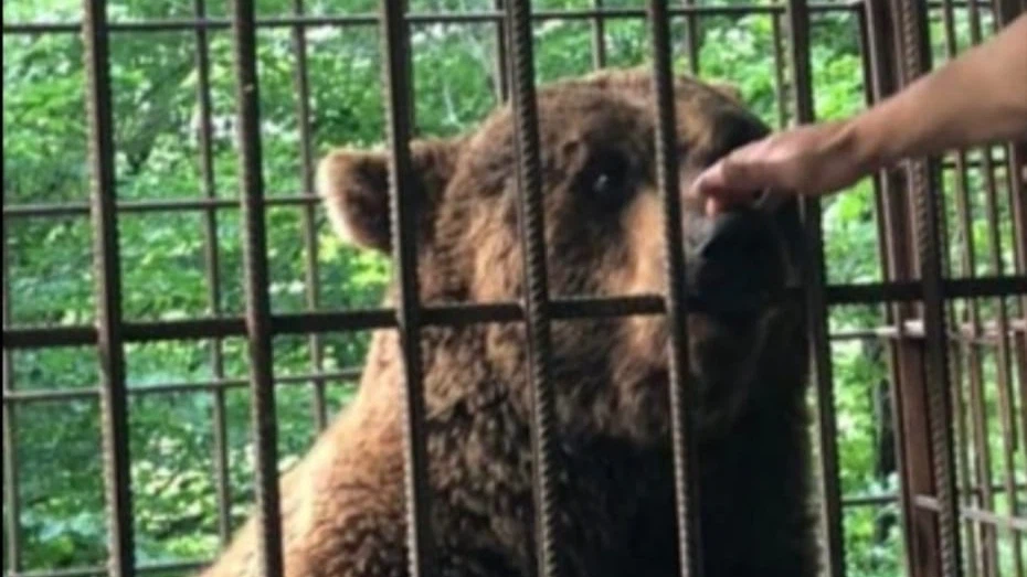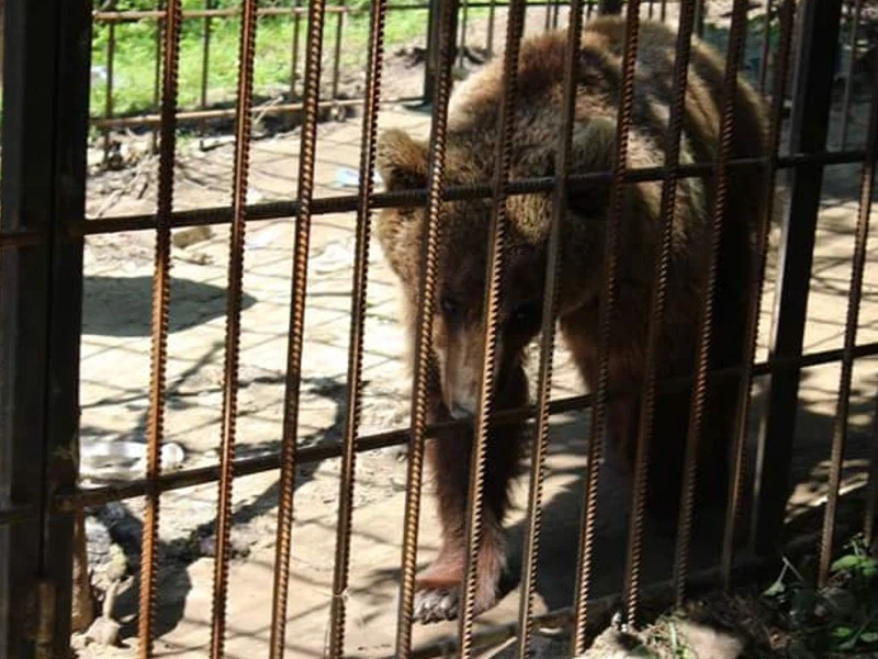«Клетка стоит на солнце (на улице до +40°C), у бедного животного нет ни воды, ни еды, ходит он по груде мусора, бровь разбита, не знаю при ловле ему разбили, или он сам пытался выбраться, но рану не обрабатывают. Мы попросили работников кафе включить воду, но они отказались, ведро тоже не дали». Это — цитата из петиции на Change.org с призывом спасти бурого медведя, жившего в клетке на территории ресторана «Табаристан» близ дагестанского села Ягдык.