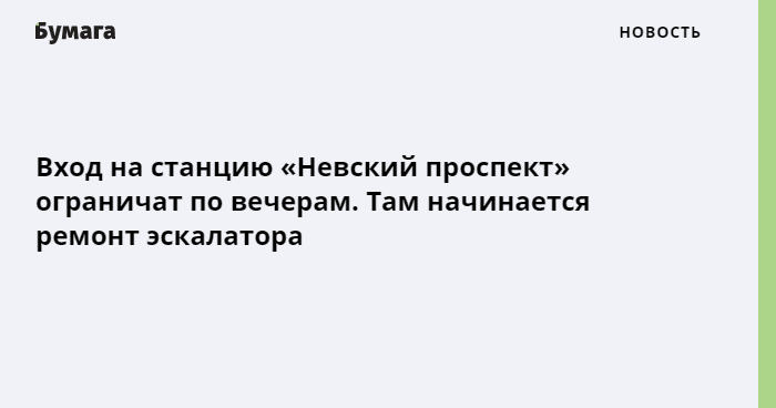 Станция «Невский проспект» (вход со стороны канала Грибоедова) будет работать в новом режиме из-за капитального ремонта эскалатора. Об этом сообщает пресс-служба метрополитена.
