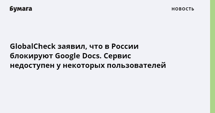 У сотрудников «Бумаги» не вышло открыть сайты сервисов. При этом у некоторых пользователей доступ к Google Docs сохраняется. Официального подтверждения блокировки Google Docs нет.