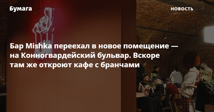 Бар Mishka переехал в новое помещение — на Конногвардейский бульвар