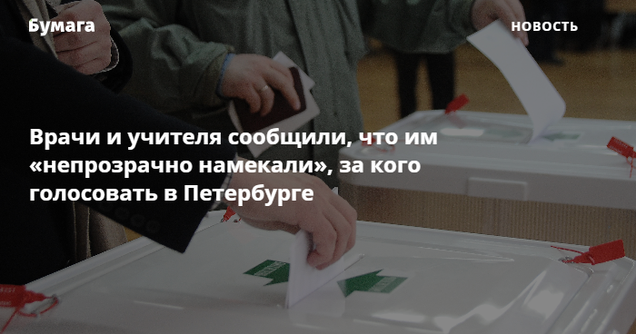 Врачи и учителя сообщили, что им «непрозрачно намекали», за кого голосовать в Петербурге