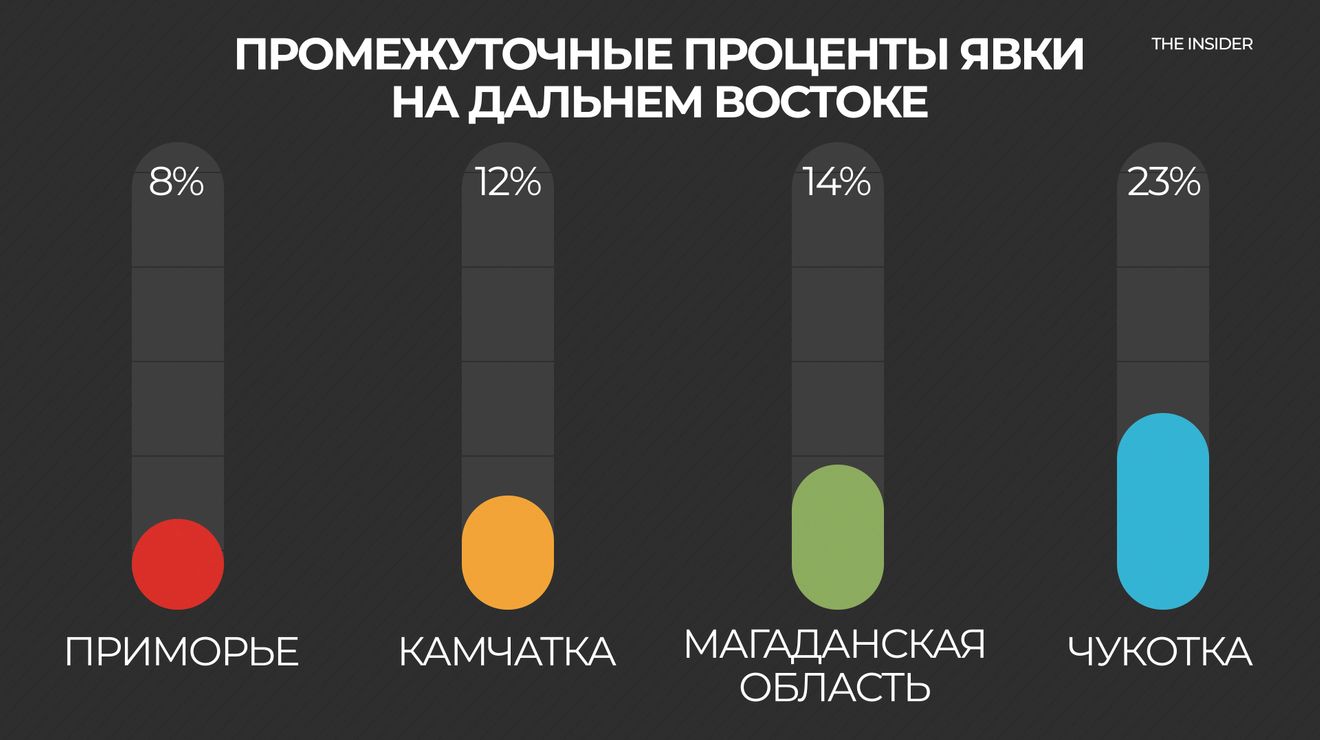 Хабаровский край показал рекордно низкую явку среди регионов Дальнего Востока. К вечеру 17 сентября в крае проголосовало 11,59% избирателей. Активность граждан оказалась выше в Сахалинской области, Камчатском крае, на Чукотке (31,40%). Низкая явка в Хабаровском крае ставит под сомнение победу действующего губернатора Михаила Дегтярева.