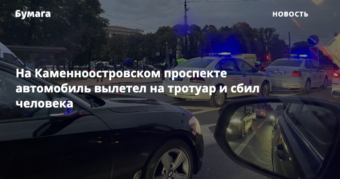 На Каменноостровском проспекте автомобиль вылетел на тротуар и сбил человека
