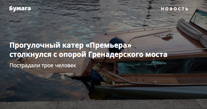 Прогулочный катер «Премьера» столкнулся с опорой Гренадерского моста