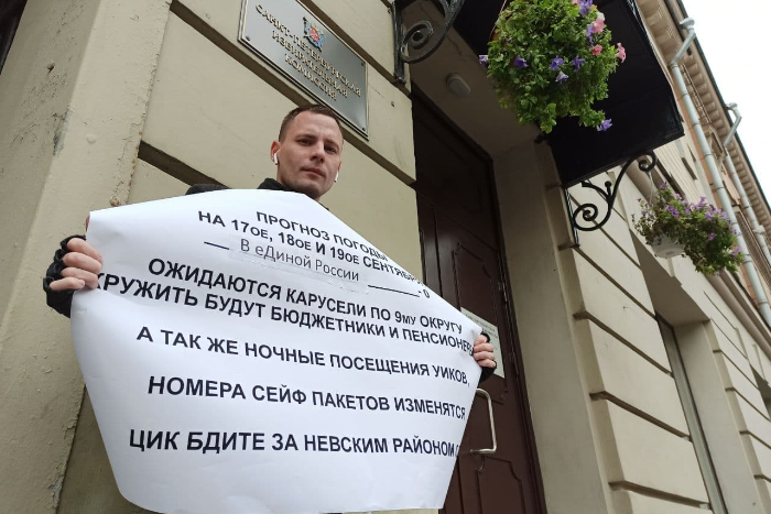 Вечером 18 сентября кандидат от партии «Яблоко» Никита Сорокин вызвал полицию на участок № 1459 в Невском районе: он предполагал фальсификацию и сообщал о пропаже пары сотен незаполненных избирательных бюллетеней.