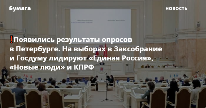 На выборах в Заксобрание Петербурга лидируют «Единая Россия» (38,17 %), «Новые люди» (11,22 %) и КПРФ (11,06 %). Далее по убыванию: ЛДПР — 8,37 %, «Справедливая Россия — Патриоты — За правду» — 7,23 %, «Российская партия свободы и справедливости» — 5,21 %, «Яблоко» — 4,01 %, «Партия Роста» — 3,19 %. Также 10,56 % избирателей отказались отвечать, за кого проголосовали. Еще 0,98 % испортили бюллетень.