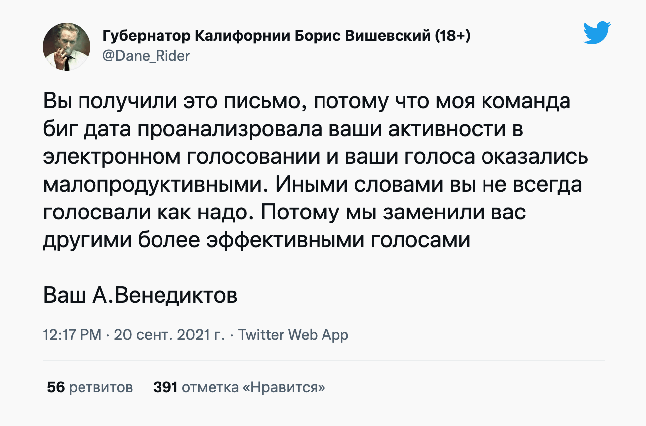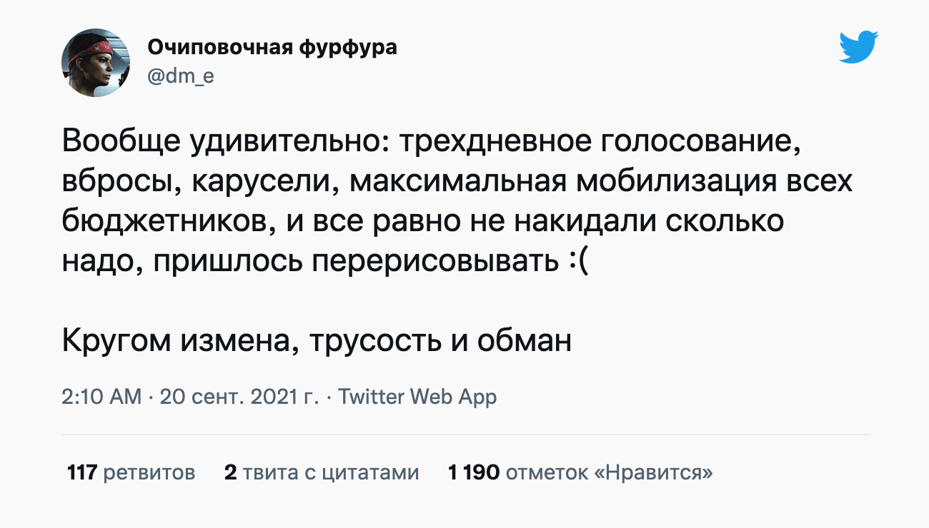 При этом многие все еще приходят в себя после того, как по рекомендации проекта сторонников Алексея Навального «Умное голосование» отдали голос за КПРФ. Коммунисты, в свою очередь, отказались признать результаты электронного голосования.