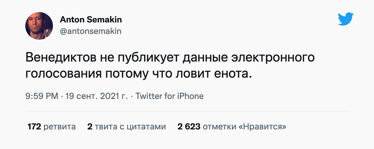 Вот и подошли к концу трехдневные выборы в Госдуму… А вот и не подошли — результатов электронного голосования нет до сих пор. Глава общественного штаба по наблюдению за выборами в Москве Алексей Венедиктов объяснил задержки большим количеством переголосовавших граждан. Результаты должны были огласить в 14:00 по Москве, но ЦИК снова передвинул дедлайн, не уточнив, когда будут обнародованы итоги.