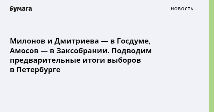 В Петербурге завершилось трехдневное голосование, во время которого горожане выбирали депутатов Госдумы и Заксобрания. Официально итоги еще не подводили, но «Бумага» публикует часть предварительных результатов.