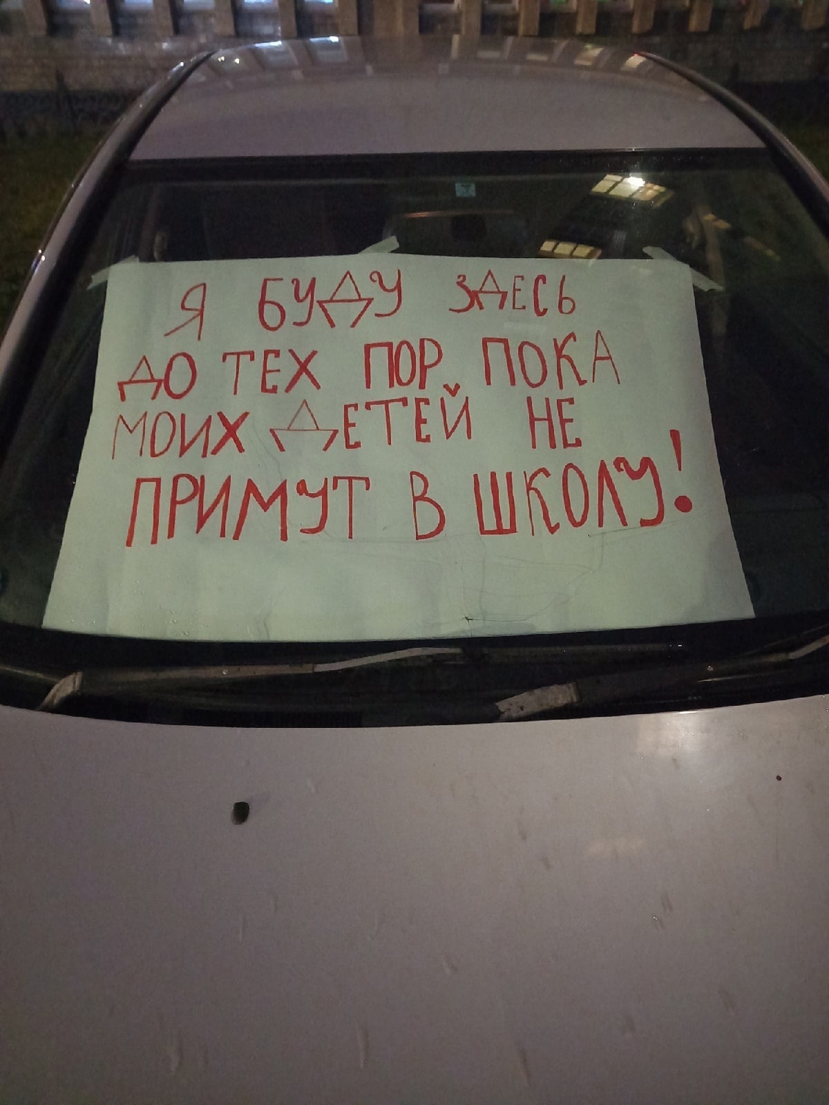 "15 июля подали документы. Но нам сообщили, что все места уже заняты и нас зачислить не могут. При этом по микроучастку наш адрес относится именно к этой школе - она буквально в соседнем дворе. В департаменте образования развели руками - школа, мол, вправе отказать. "Бумажным" путем справедливости добиться не удалось, пришлось устроить такую акцию. Через полдня к машине пришла полиция и начали звонить из министерства", - сообщил Сергей.