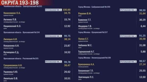 В Москве ни один из оппозиционеров среди одномандатников не смог победить провластных кандидатов. Некоторые из независимых выдвиженцев до последнего лидировали в округах, однако уступили «единороссам» в самом конце подсчётов.