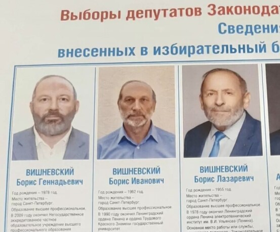 Кандидат от «Умного голосования» «яблочник» Борис Вишневский тоже проиграл — его обошёл «единоросс». Cкандал с его участием стал одним из самых обсуждаемых перед выборами. В начале сентября на выборы в Заксобрание Петербурга два кандидата от округа политика изменили имена на Бориса Геннадьевича и Бориса Ивановича Вишневского. Они подали в избирком свои фотографии, на которых были сильно похожи на настоящего Вишневского — они отрастили бороды и отретушировали фото, предположил яблочник».