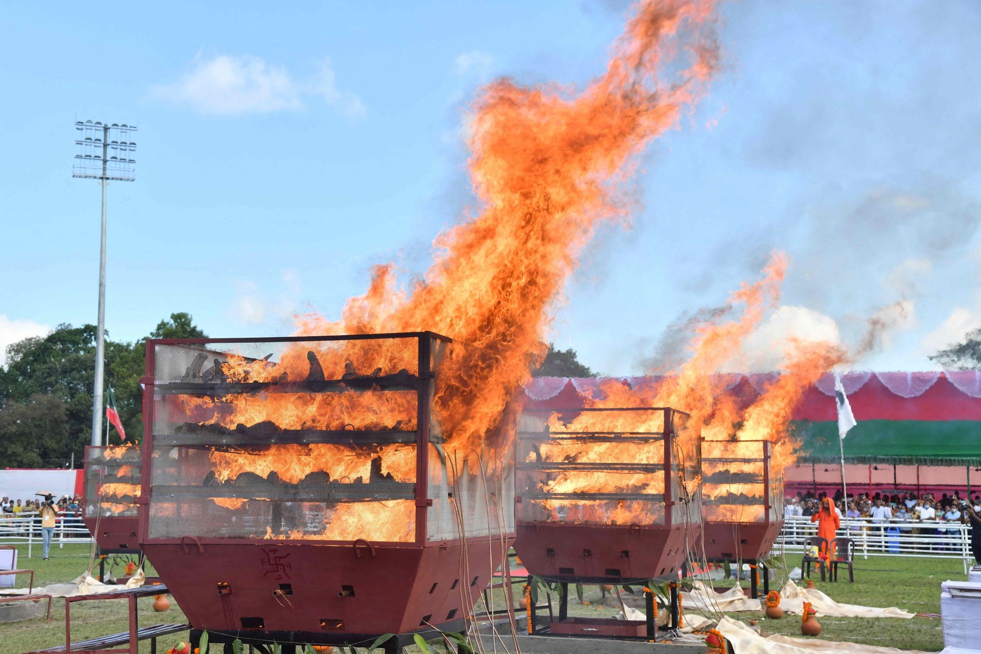 В Индии сожгли почти 2500 рогов носорога — чтобы привлечь внимание к сохранению вида. Фотография