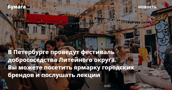 В воскресенье, 3 октября, в Петербурге пройдет фестиваль добрососедства Литейного округа «Литейный local fest». Координатор праздника Лада Чижова предоставила «Бумаге» программу.