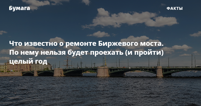 Что известно о ремонте Биржевого моста. По нему нельзя будет проехать (и пройти) целый год