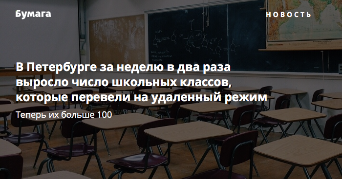 В Петербурге из COVID-19 и ОРВИ на удаленный режим обучения перешел 101 класс в 58 школах. Об этом «Бумаге» сообщили в городском комитете по образованию 24 сентября.