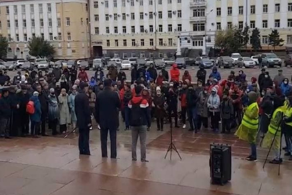 Участники выступали перед микрофоном, задавали вопросы Мархаеву и коммунисту Баиру Цыренову, занявшему второе место на выборах в Госдуму по одномандатному Бурятскому округу. Плакатов никто не разворачивал.